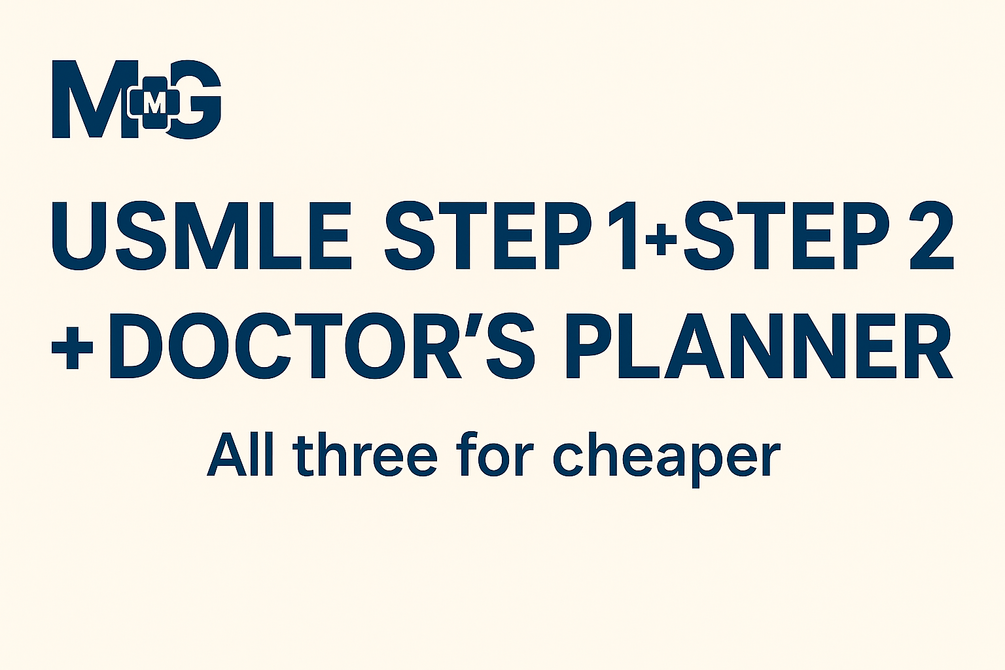 You will get the USMLE STEP 1 and USMLE STEP 2 prep guides + Doctor's planner. This is an excellent package to keep track of your studying along with other duties.